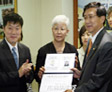 성금을 내는 시민의 모습이 진지하다.