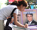 가두 서명운동에 참여하는 대학생들