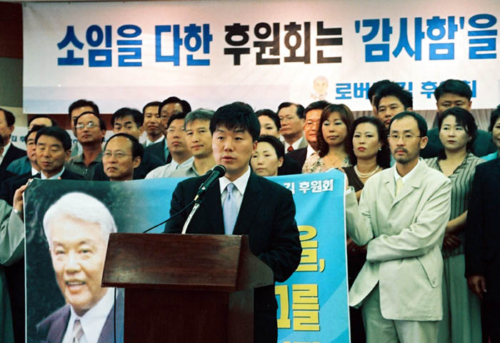 '소임을 다한 후원회는 감사하는 마음을 안고 해산합니다!' 8월 31일, 이웅진 후원회장이 해산 선언문을 낭독하고 있다.