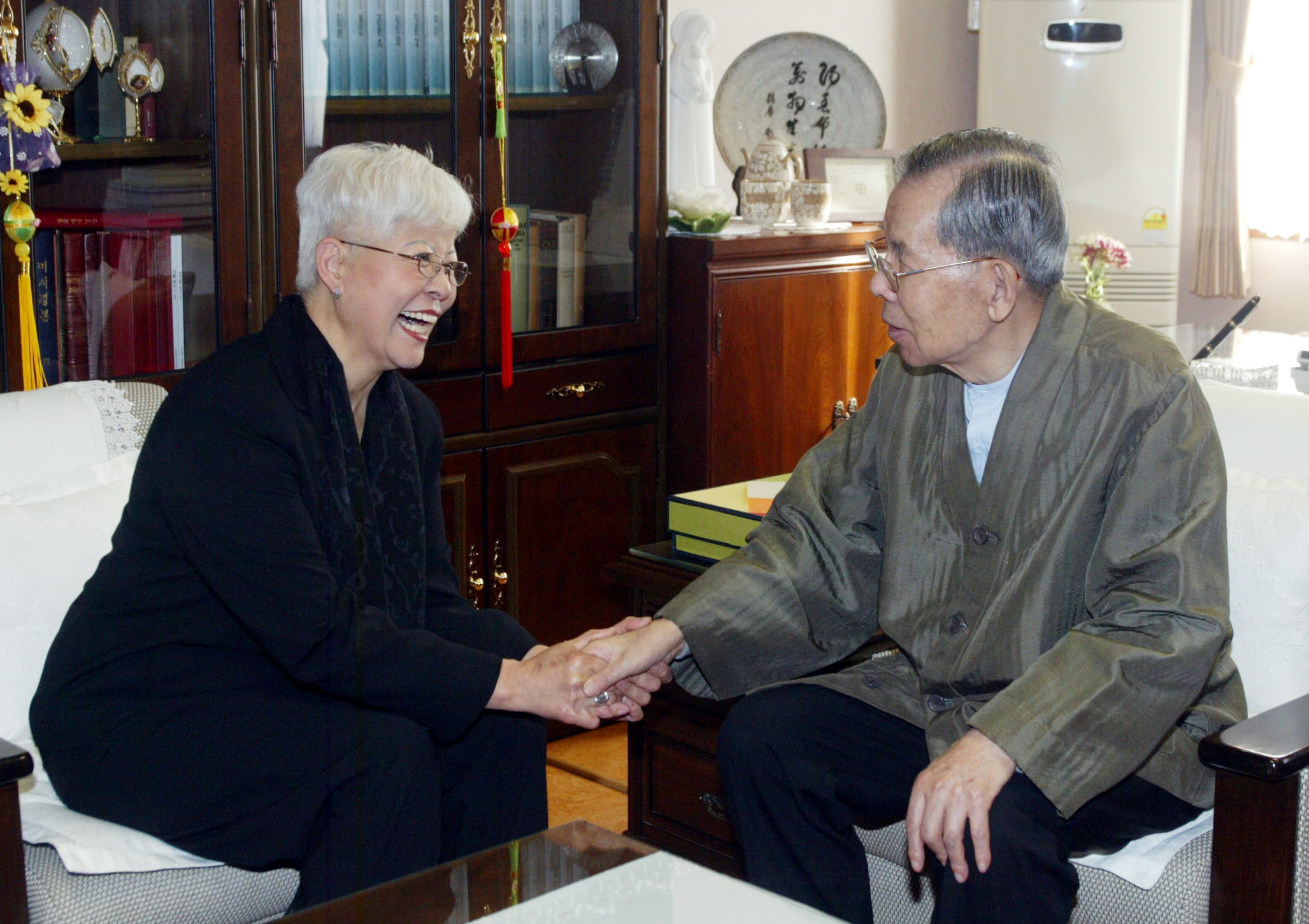 로버트 김 부인 장명희 여사께서 방한 기간중 로버트 김 후원회 고문이신 김수환 추기경님을 만나뵙고 담소를 나누고 있다.