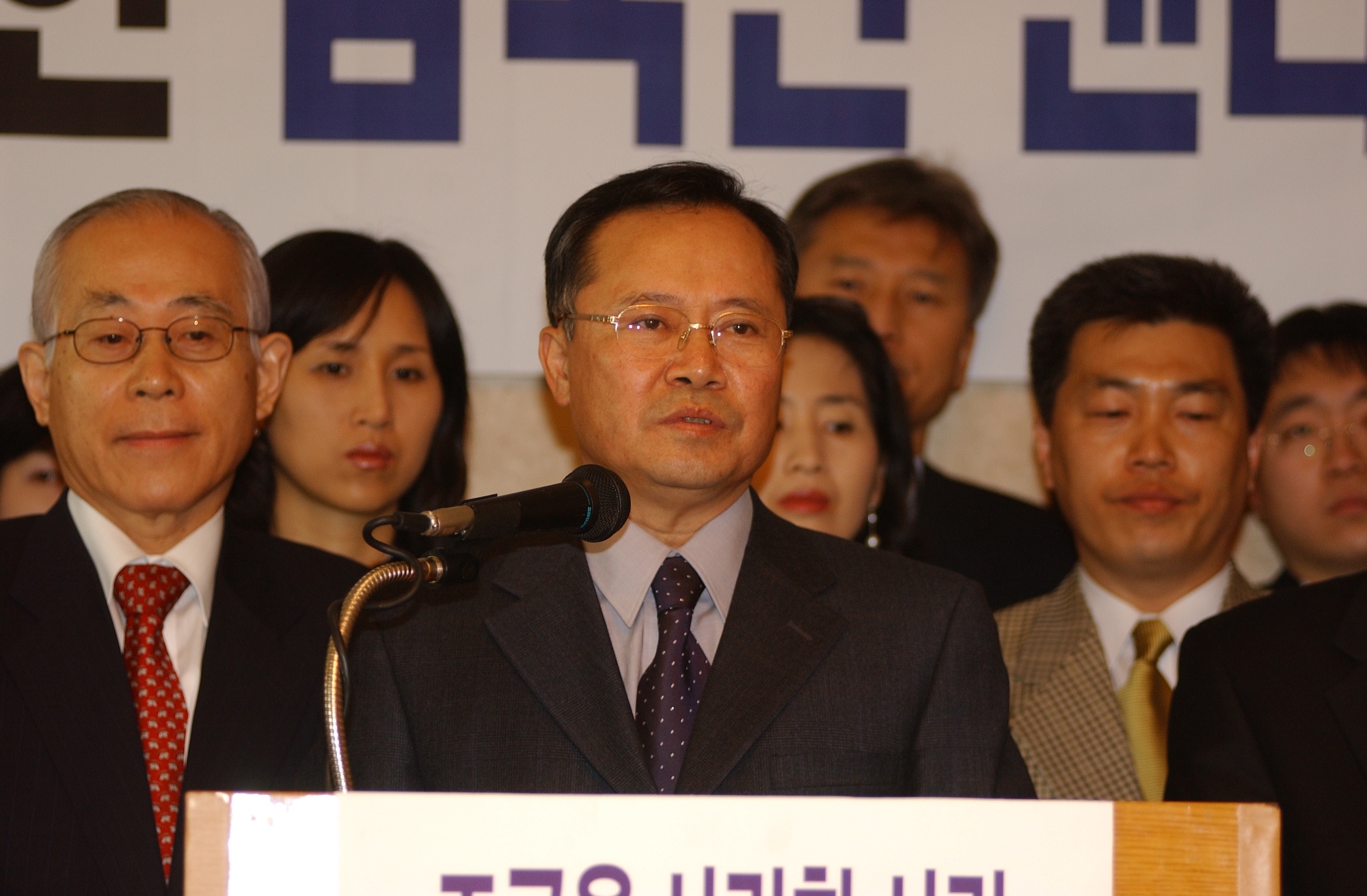 2004년 3월 11일 프레스센터에서 열린, <범국민지원센터 출범 선언식>에 백동일 센터장께서 취임 인사를 하고있다
