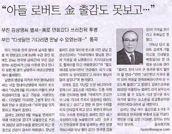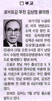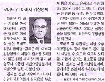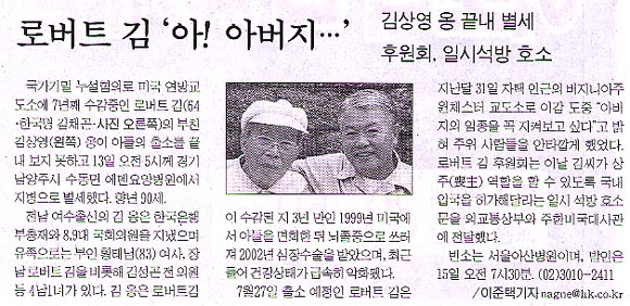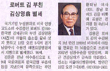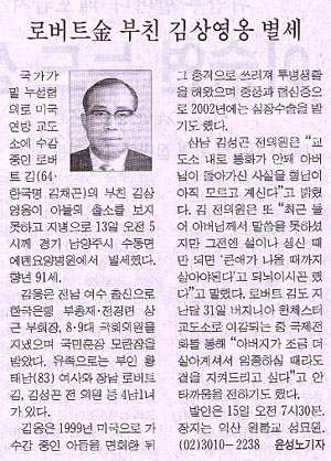 [동정/광장] 로버트 김 부친 김상영옹 별세