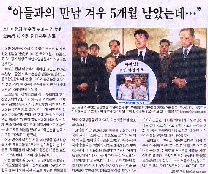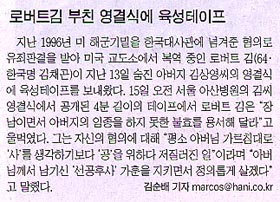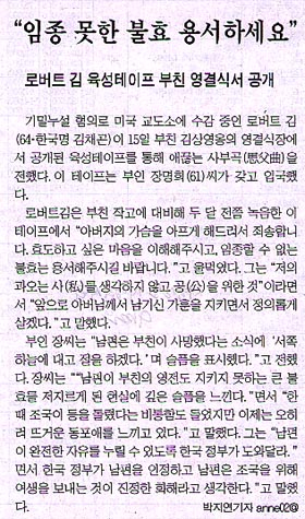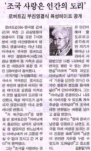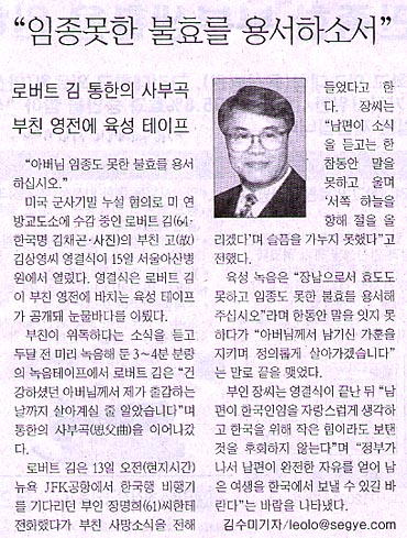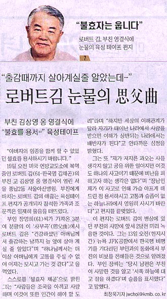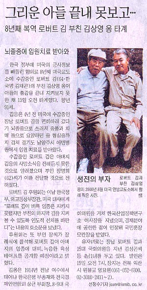 그리운 아들 끝내 못보고…로버트 김 부친 타계
