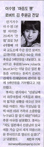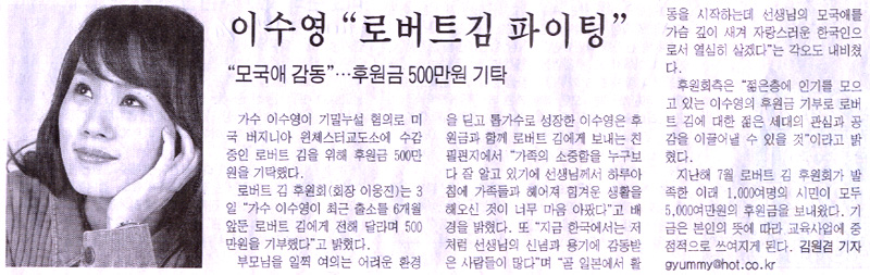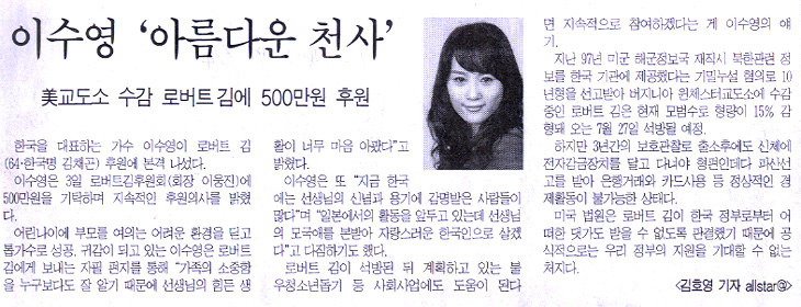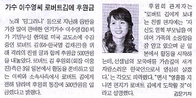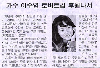 가수 이수영씨 로버트 김에 후원금