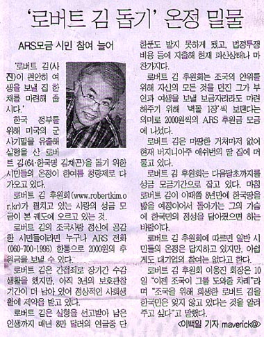 '로버트 김 돕기' ARS 모금 시민 참여 늘어