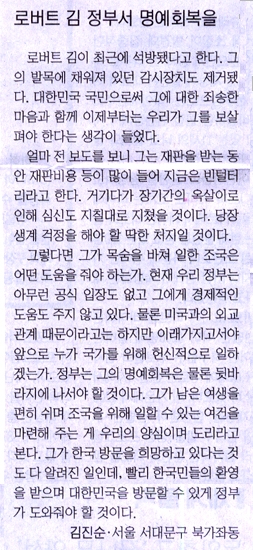 애국시민의 힘‘파산’ 로버트 金에 새집