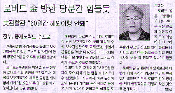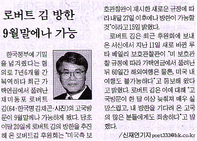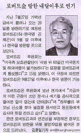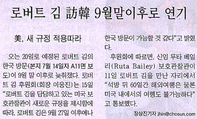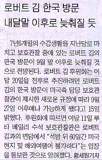 '로버트 김' 訪韓 늦춰져… 9월27일 이후에나 가능