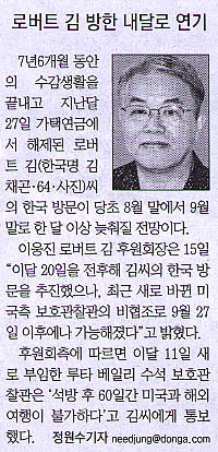 로버트 김 한국 방문 내달말 이후로 늦춰질 듯