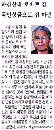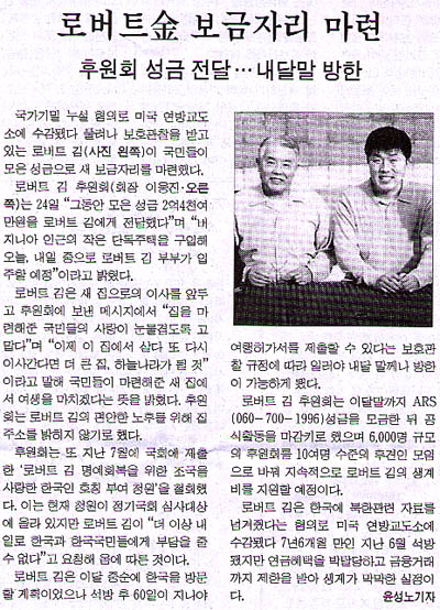 로버트김 ‘내집 마련’…국민성금 2억4천만원으로