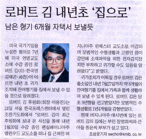 로버트 김 내년초 ‘집으로’