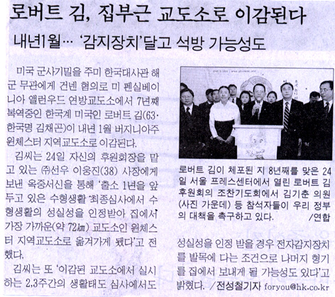 로버트 김 이감 … 석방 뒤 방한 길 열릴까