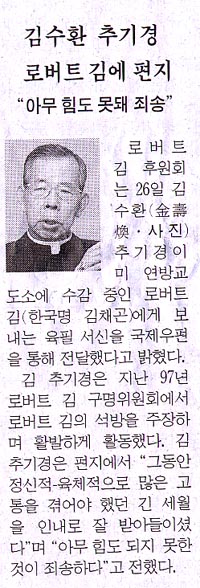 옥중편지에 육필 답신 아무 힘 못돼 죄송담아