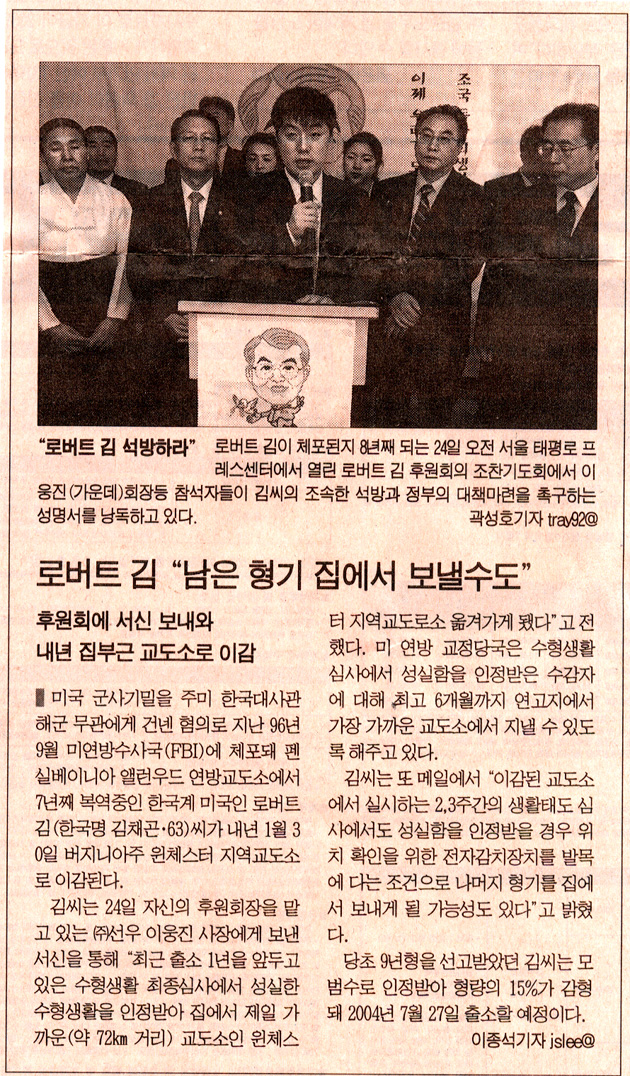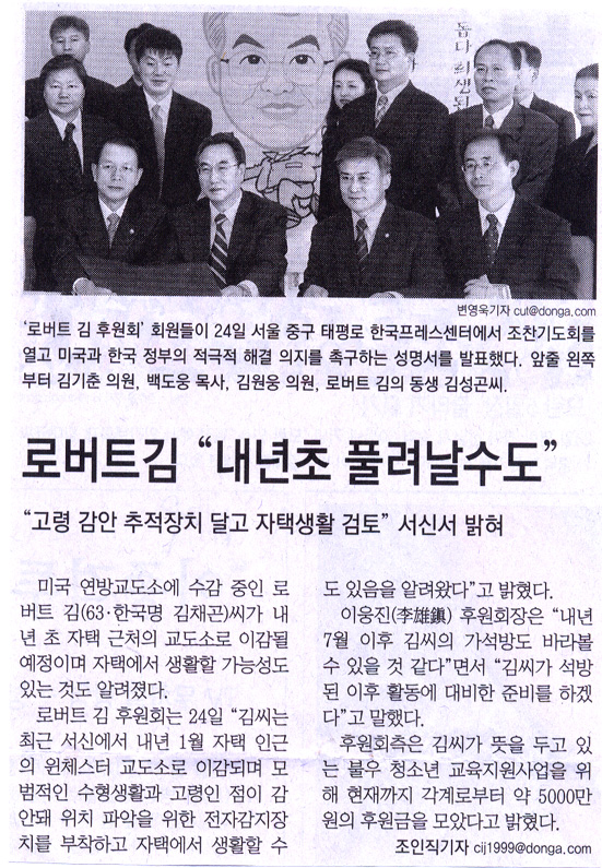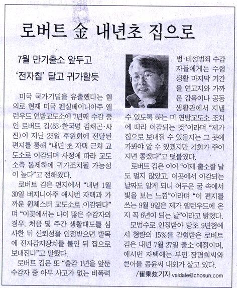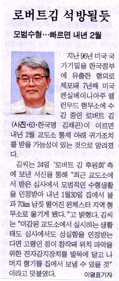 로버트 김, ‘교도소통제’ 석방가능성(종합)
