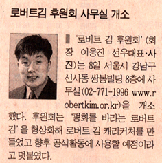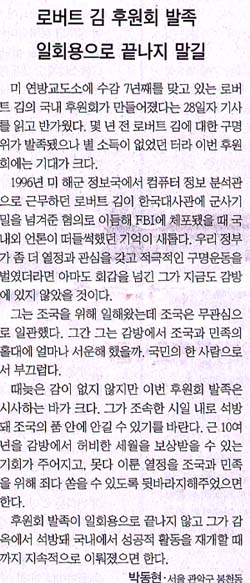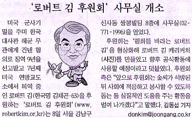 [중앙일보를 읽고]로버트 김 후원회 발족 일회용으로 끝나지 말길