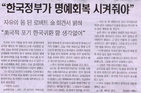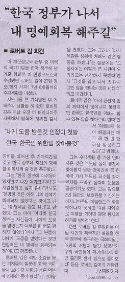 로버트 金 한국정부가 내 명예회복 시켜줘야