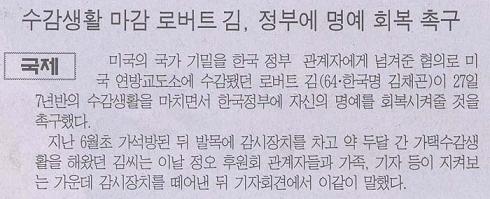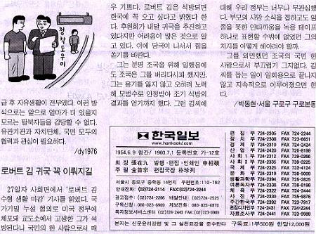 [한국일보를 읽고] 로버트 김 귀국 꼭 이뤄지길