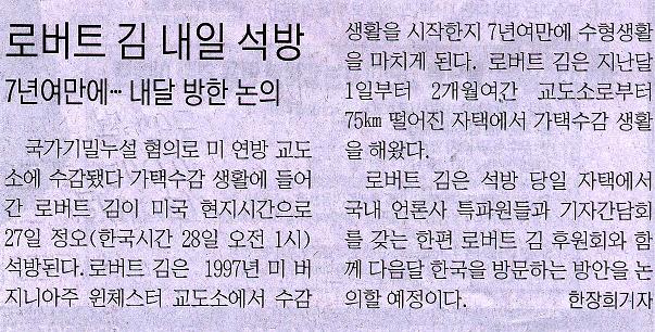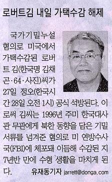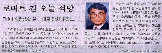로버트 김 오늘 석방