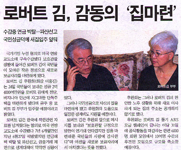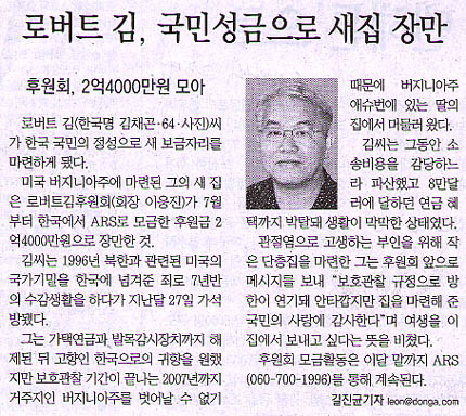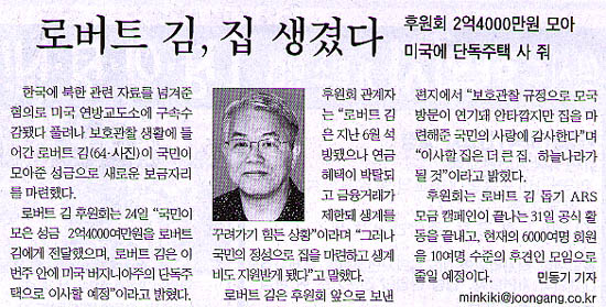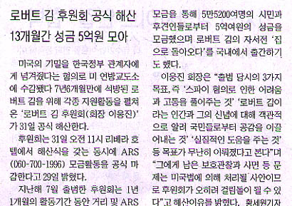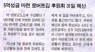 485 5억성금 마련 로버트김 후원회 31일 해산