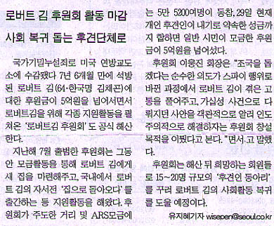 487 로버트 김 후원회 활동 마감 사회 복귀 돕는 후견단체로